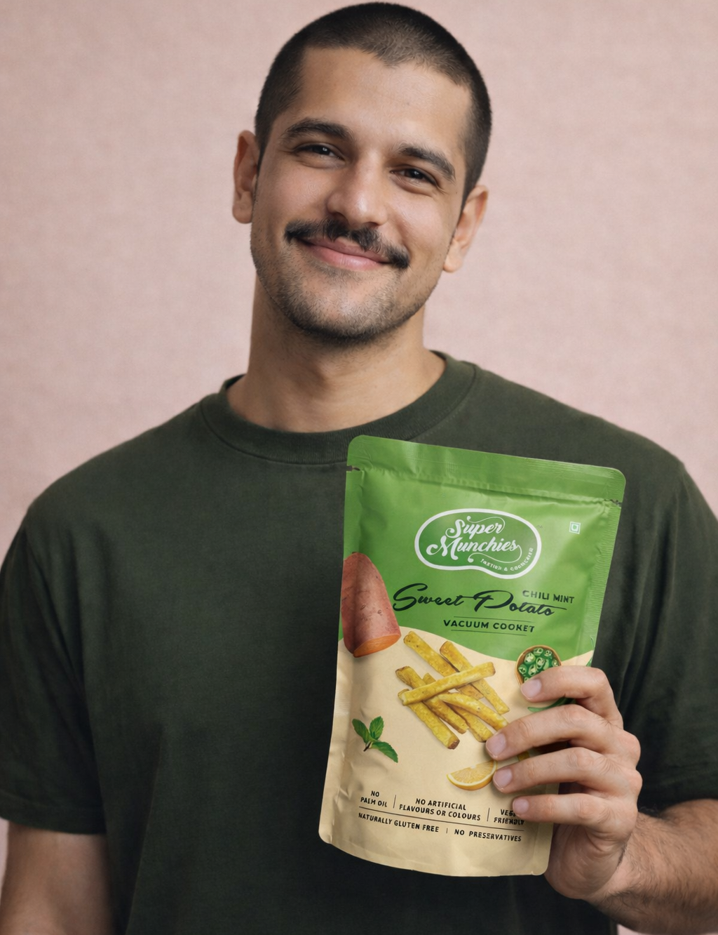 Super Munchies Chili Mint Sweet Potato is made from real sweet potatoes that are sliced and gently vacuum cooked at low temperatures. The chips are seasoned with a balanced blend of chili and mint to create a bold yet refreshing flavor.