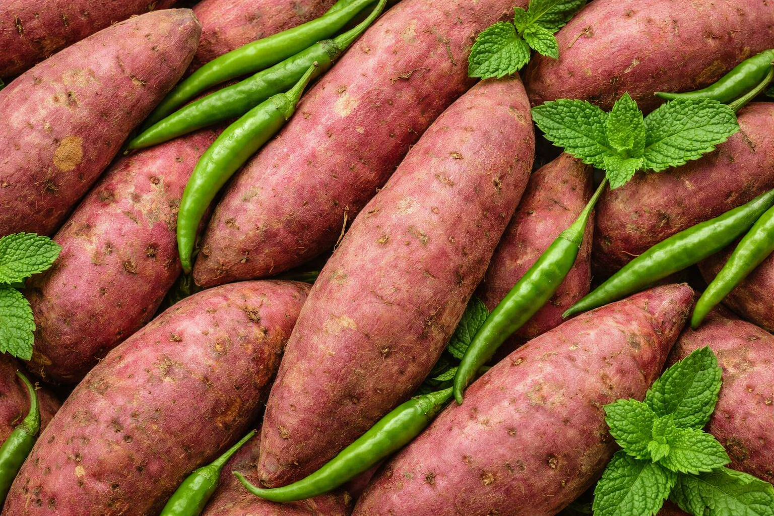CHILI MINT SWEET POTATO. COOL HEAT BALANCE.